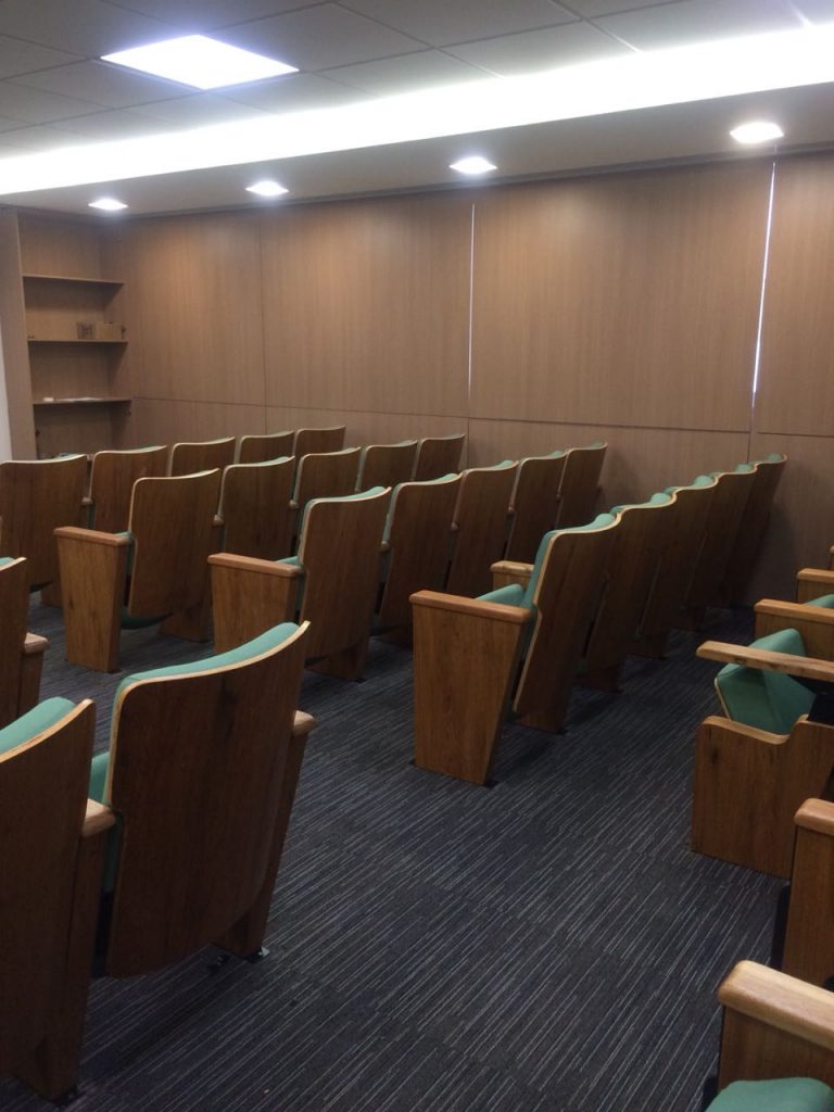 Os principais desejos apresentados pelo cliente foram praticidade, beleza e satisfação. O ambiente deve se adequar rapidamente a uma reunião de estudos, ao mesmo tempo em que receberá confraternizações, palestras e debates. “Um auditório bem organizado e com móveis de qualidade faz com que seus visitantes se impressionem com o local e contribuam para a manutenção”.